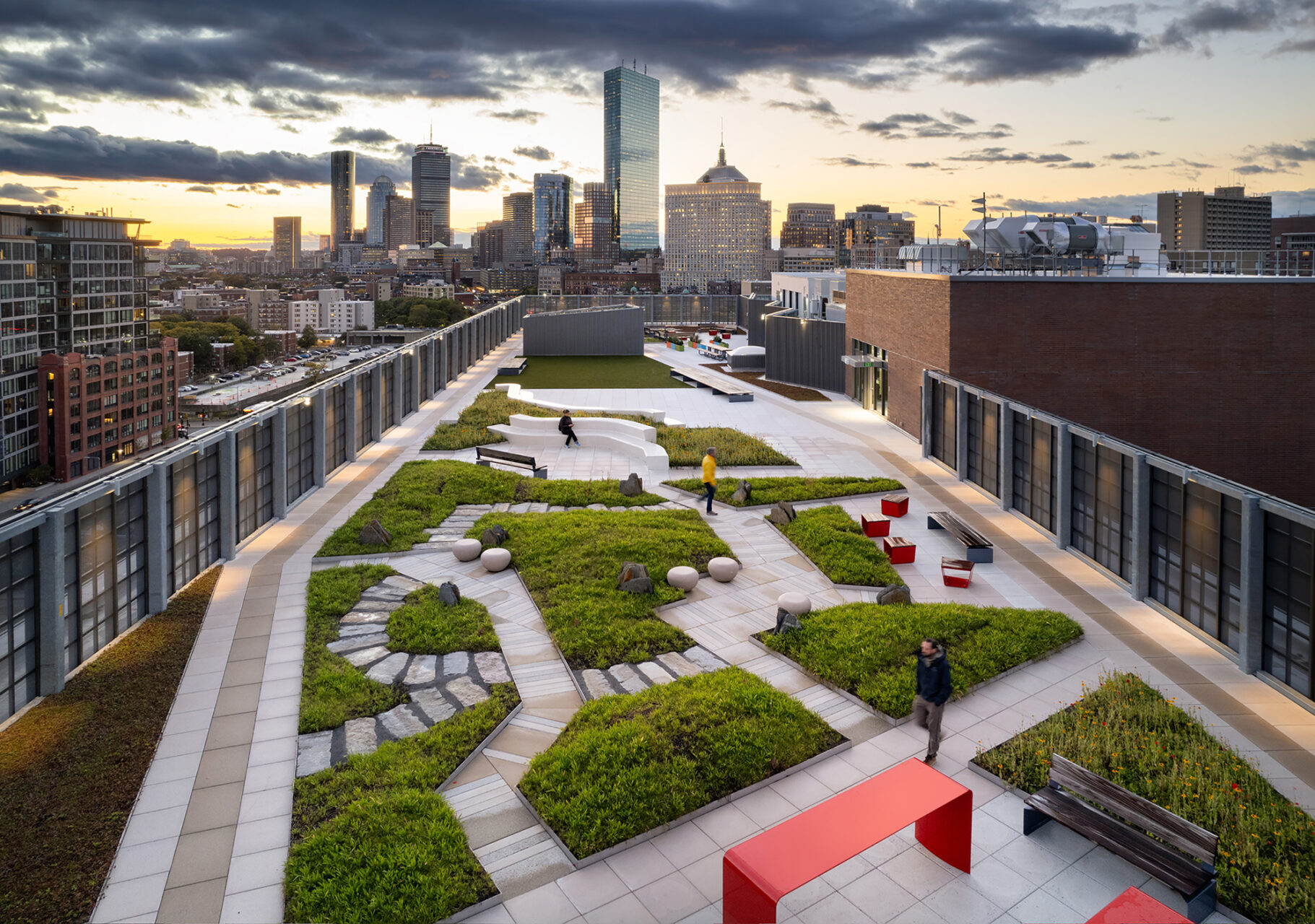 Project overview: Adjacent to its sister elementary school in Boston’s Chinatown, a less than one-acre site facing directly on to the Massachusetts Turnpike was selected for a new, full-program middle high school. This required developing a vertical plan stretching over eight levels with a large, accessible rooftop garden.