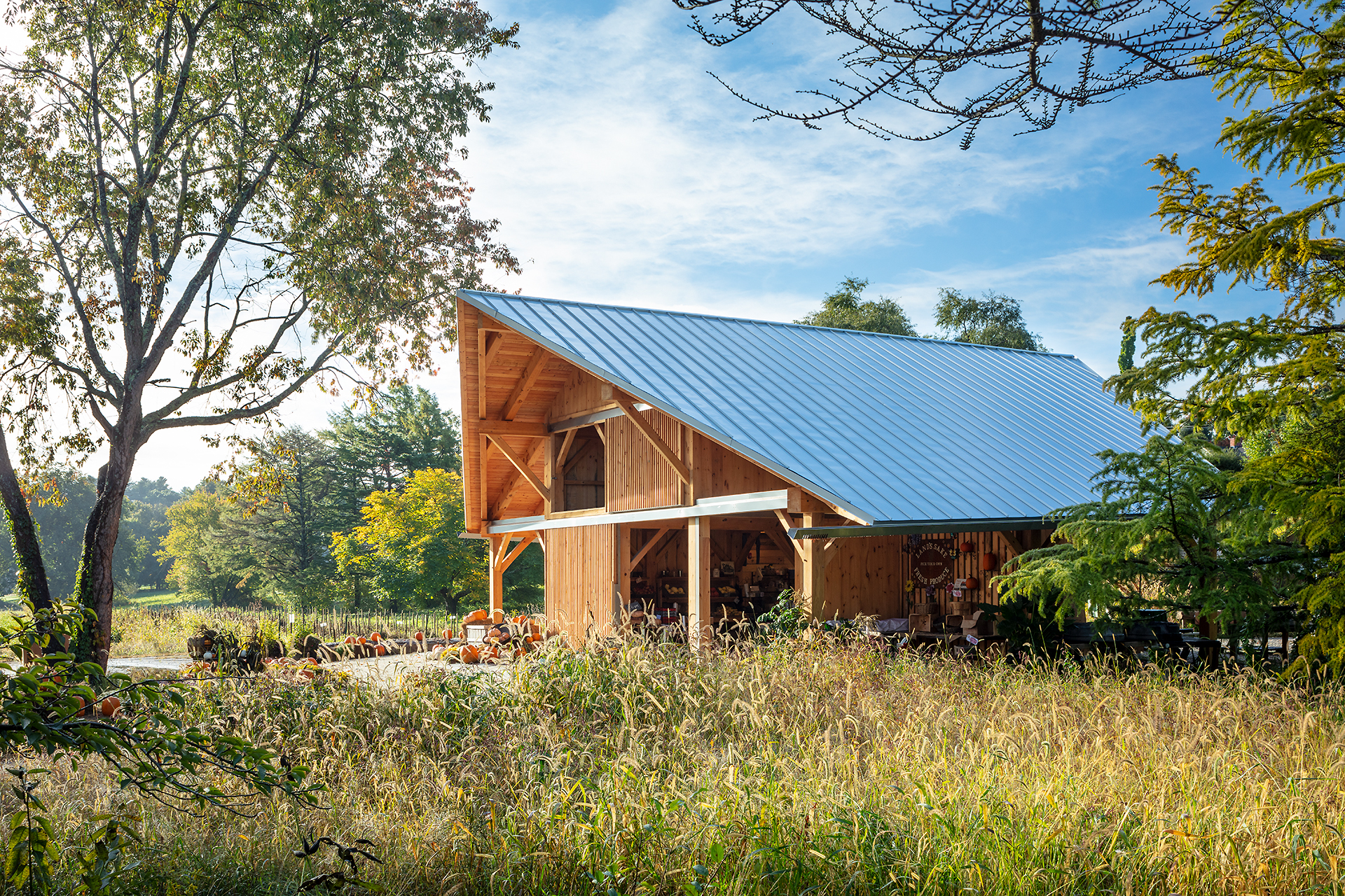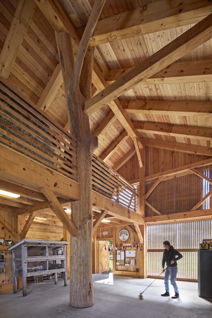 Project overview: Land’s Sake is a non-profit community farm that donates 30% of its produce for hunger relief to communities in need. The Farmstand and Animal Barn are the result of a 7-year pro bono effort that began with a master plan. Buildings are sited to preserve the “infinite vista” through the heart of the historic site and explore the craft and materiality of “First Settlers” building techniques, with a confident nod toward modernity. The projects work together to utilize a range of sustainable principles and practices, including shading and building orientation, heavy timber construction, high-performance building enclosures, ventilation and heat recovery systems and photovoltaics resulting in a net zero farm.
