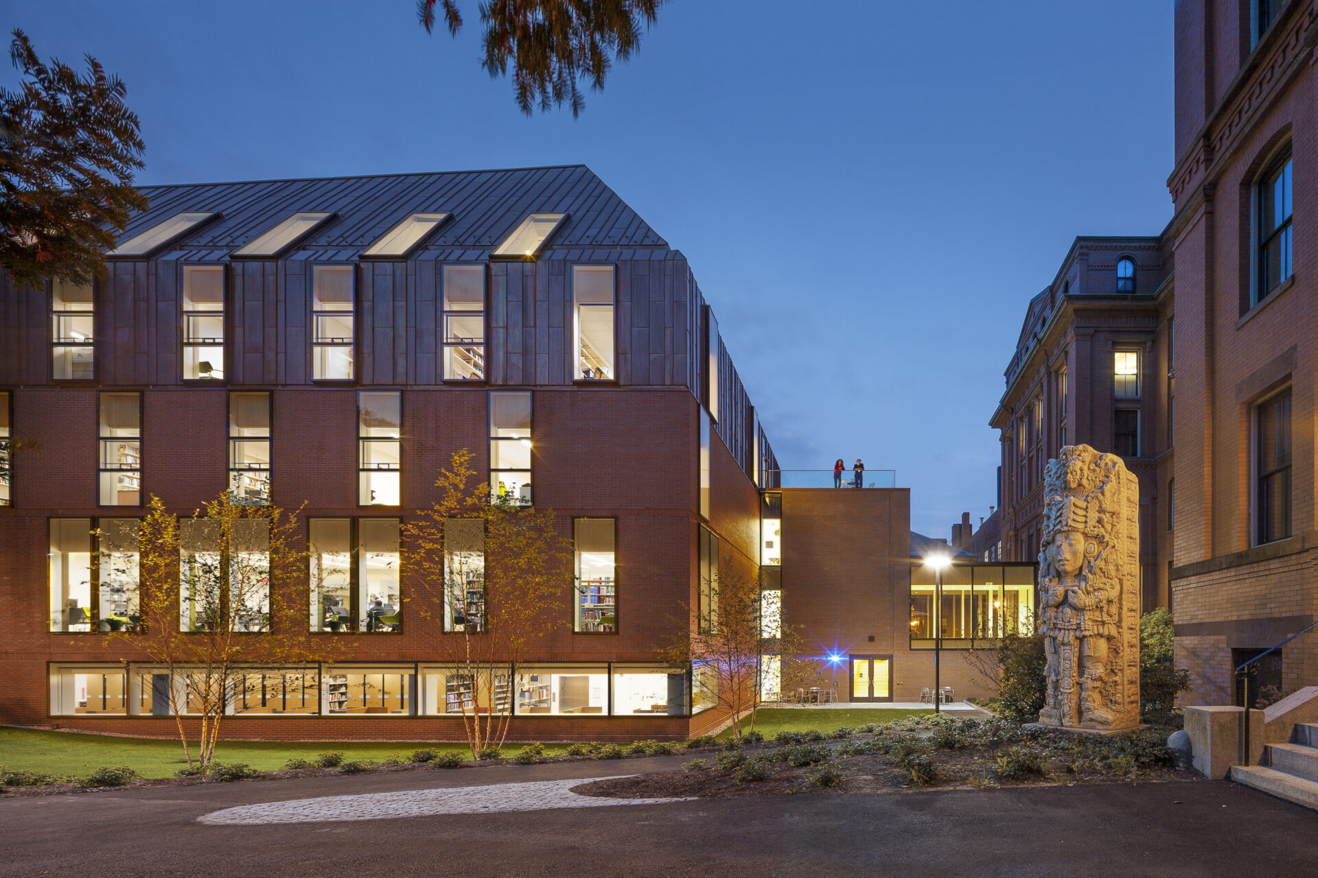 Project overview: KVA’s design for Harvard University’s Tozzer Anthropology Building transforms the public presence and programs of the 1971 Tozzer Library. The design challenge was to expand a 21st century Anthropology curriculum while re-using the existing 1971 building footprint, campus infrastructure connections, and steel and concrete structural system. The massing strategy adds two new stories under a large copper roof volume, which rotates to capture daylight for a large internal light well around which the internal programs revolve. The copper roof form and its subtle rotation strengthen a more independent reading of the Tozzer Anthropology building as a pavilion in the Peabody Courtyard. The new design provides a public entry on Divinity Avenue, public access from the new lobby to the Peabody Courtyard and a direct link to the Peabody Museum Collections and Department of Archeology.