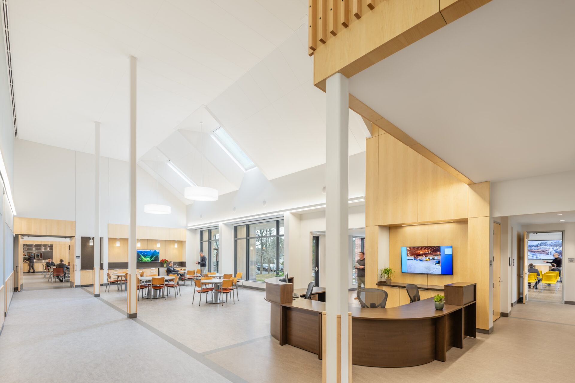 Universal Design principles were embedded from the outset, shaping everything from site entry to interior layouts. Accessibility, intuitive wayfinding, and visibility create an environment where seniors can engage confidently and comfortably. In this way, the building itself becomes an extension of the services it houses: supporting dignity, independence, and well-being.